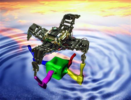 这个机器人是由美国康奈尔大学的研究人员Hod Lipson和Victor Zykov,美国佛蒙特大学的研究人员Josh Bongard共同开发的,通过关节内置的传感器,它能进行自我观测,从而在体内的计算机中形成对自己的一个概念,或者说,至少是自己的身体结构。