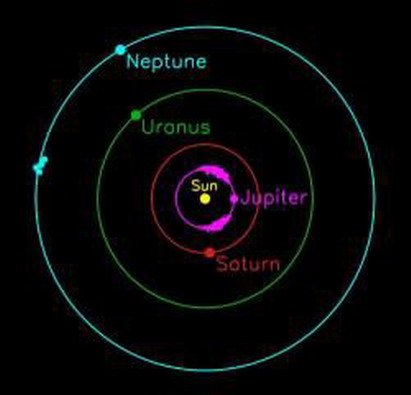 海王星离开地球约50亿千米,“特洛伊”小行星环绕轨道旋转,小行星旋转轴倾角为60°,从而使它们的引力状态达到稳定状态。但是新发现小行星旋转轴倾角为25°,这说明在该区域很可能还存在大量小行星。