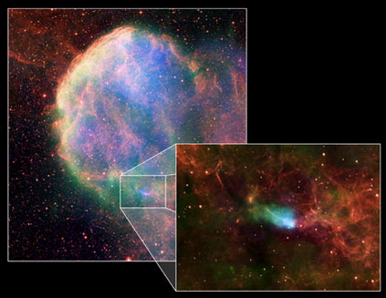 借助于美国宇航局“钱德拉”X射线观测望远镜对中子星的长期观察,使天文学家产生一个意外和迷惑不解的问题,按照公认的理论,中子星是在超新星爆发时形成的,这时超新星中心部分变成中子星(脉冲星),而外层物质以每秒几千千米的速度被抛弃,并形成气尘云团。