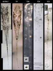 PET研究小组得出初步结论,彗星物质是石屑与细小尘埃的疏松混合体,彗星物质的大小颗粒在收集时被分类和落入气凝胶捕集器,在气凝胶中会留下不同形状的踪迹。大颗粒彗星物质留下的踪迹是树枝状结构,它们的长度达到2厘米、宽度0.5厘米,而小颗粒彗星物质会在气凝胶中形成月牙坑,分析这些颗粒能获得有关彗星物质样品中含有有机物质的初步信息。