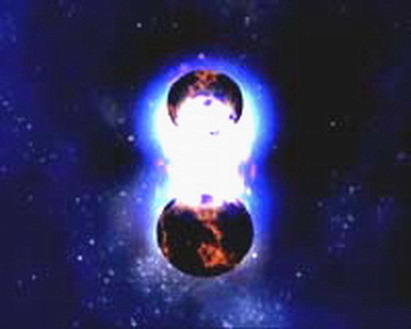 中子星是直径约为20千米和质量大致与太阳相当或超过太阳几倍的密实恒星,中子星是在超新星爆发后形成的,爆发时超新星外层会被抛射到周围空间,而中心部分在引力作用下急剧收缩。如果中子星形成双星系统,则它们会围绕共同的重心沿一条缓慢扭转的螺旋线旋转,因此它们迟早会发生碰撞。天文学家认为,在中子星碰撞时会产生短伽马射线爆发——宇宙中最强烈的爆发。