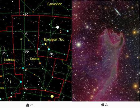 CG4彗星团是活跃诞生恒星区域中不大的气体尘埃云团,彗星团位于离开地球1300光年的船尾星座(图一)。天文学家认为,彗星团拥有的物质足以形成几颗像太阳大小的恒星。