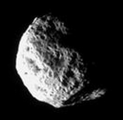 土卫七被认为是太阳系中最大一颗无定形卫星,在外形上它像一个不规则土豆,其大小为410×260×220千米,并且表面布满大量斑痕。它无秩序地在空间旋转,围绕土星旋转一周的时间为21.3天,轨道半径约为148万千米。