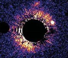 美国加州大学以波尔•卡拉斯为首的天文学家小组首次获得两颗类太阳恒星附近尘埃圆盘的照片,这样的尘埃圆盘早已根据恒星光谱中红外线辐射过剩而被发现,但是要直接看到这圆盘很复杂,因为圆盘亮度明显不如恒星本身亮度。