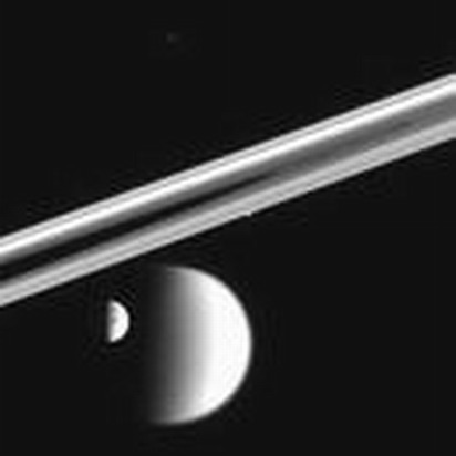 在拍摄时 “卡西尼”号离开这4颗卫星很远,离开土卫六的距离为250万千米,离开土卫四的距离——210万千米。在拍摄后一个小时,全部4颗卫星都“隐藏”到了土星圆盘的后面。