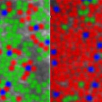 现在罗切斯特大学科学家首次获得如此详细的视网膜照片,并且是活人的视网膜照片,因此能用来识别全部的光感细胞。为此该大学研究人员在视网膜照片中采用自适应光学(借用天文学原理),以便消除在眼睛中产生的光学失真。现已查明,普通人(不是色盲患者)的“绿色”和“红色”锥状细胞相互比例可以相差40倍。