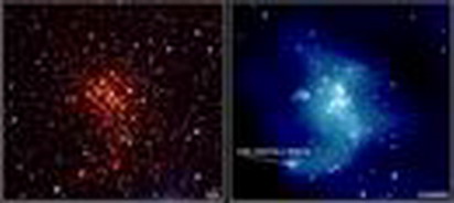 天文学家借助于“钱德拉”X射线观测望远镜在年轻的Westerlund 1星团中发现了这样的中子星,Westerlund 1星团位于天坛星座中。所示照片是借助于“钱德拉”拍摄的,左边是利用光学望远镜拍摄的。