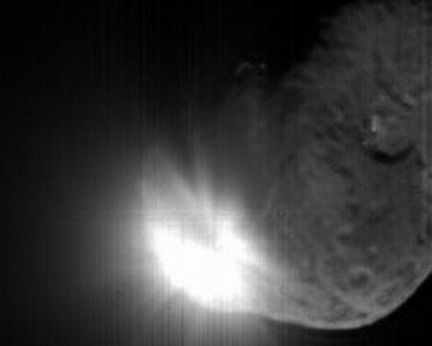 “深度撞击”探测器发射的铜头炮弹质量为370千克,以大约10.2千米/秒的速度射向彗星,根据科学家计算,撞击结果会在彗星表面形成一个直径达100~135米的陨石坑,并产生强烈物质喷溅,撞击结果会引起4500吨水蒸发,令科学家感到惊奇的是,还伴随有大量尘埃喷发。