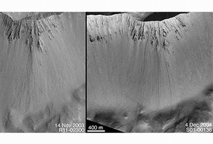 对火星全球探测器拍摄照片进行的分析表明,火星地貌在发生改变——出现新的水冲穴和河道,气候在快速变化。