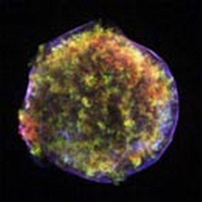 证据是利用“钱德拉”X射线观测望远镜对仙后星座中季霍布拉加(Tycho Brahe)恒星进行观察时发现的,是1型超新星残余,由著名丹麦天文学家季霍布拉加在1572年发现的。在该天体照片上天文学家发现膨胀的物质气泡(照片上部绿色和红色斑),气泡位于电子云内部,电子云具有非常高的能量(天蓝色)。并且电子云在以比其内部物质更快的速度在膨胀,速度与宇宙射线速度相符。因此证明,至少是一次超新星爆发的冲击波产生发射宇宙射线的条件。