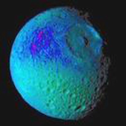 照片上呈现出的土卫一“彩色”与真实情况不相符,它反映出组成土卫一表面物质不同的光谱性质。