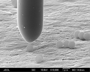 科学家用扫描电镜处理纳米颗粒