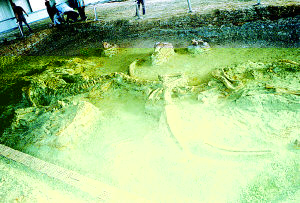 据当地官员介绍,去年11月,一位青年农民在南瓷湾村旁的小山上,逮“刺猬”时,发现一块被雨水冲刷出的生物化石,及时报告了有关部门。经中科院古脊椎动物与人类研究所专家鉴定,该化石为恐龙化石。后经实地初步挖掘,该所专家今年4月13日确认,这些恐龙化石为蜥脚类、鸟脚类两个属种,是迄今为止我国发现面积较大、分布集中、保存完整,周边环境未遭破坏的一处古生物化石群。