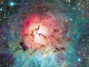 美国宇航局发表“哈勃”太空望远镜传回地球的М20三裂星云独特照片,三裂星云位于人马星座,其宽度达到50光年,距地球的准确距离尚不清楚,估计为2200至7600光年。