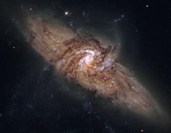 这是“哈勃”太空望远镜在2000年5月拍摄的星系照片 “哈勃”太空望远镜向地球传送回偶然出现在同一观测线上两个旋涡星系的独特照片,再次使天文学家感到了惊奇。