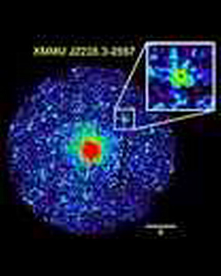 值得一提的是,这个星系团已被命名为XMMU J2235.3-2557,天文学家利用欧洲南方天文台“甚大望远镜”和XMM-Newton X射线太空望远镜对它进行观察,发现组成这个星系团的有椭圆星系即最古老的星系,在椭圆星系中含有大量古老的红色恒星。除此之外,该星系团外形呈球形,这说明它具有非常成熟的结构。但天文学家并不认为,如此复杂和成熟的星系团会在宇宙存在的早期阶段形成。
