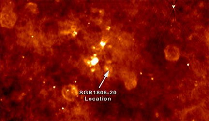 特别是,这次记录到的能量喷发比此前记录到的所有最强烈爆发至少超过100倍,尽管发生这样的能量损失,SGR 1806-20中子星依然没有减缓自己的运动(该磁星的旋转周期为7.5秒)。