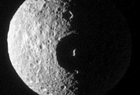 “卡西尼”号探测器拍摄的最新一批照片证明,土星卫星土卫一是“星球大战”后幸存的“死亡之星”。2005年1月16日获得的数据表明,一个巨大陨石坑占据整个土卫一的三分之一,该陨石坑长度竟达到138千米。全部照片是“卡西尼”号从距土卫一213千米处拍摄的,照片分辨率为每线1.3千米。