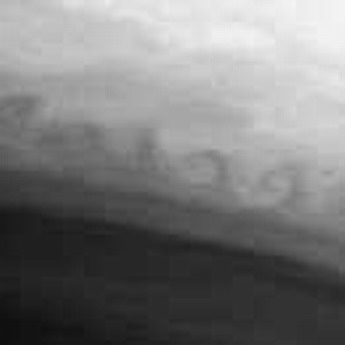10月9日,“卡西尼”号探测器利用窄角照相机从距土星590万千米距离拍摄到土星云团表面片段、两云团准确边界和边界上的紊动涡流。照相机上安装有波长为889纳米红外线滤色镜。
