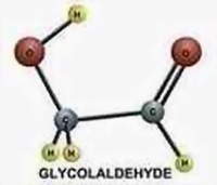 乙二醇醛分子由8个原子组成:2个碳原子、2个氧原子和4个氢原子,这就是所谓的双碳糖,它可以与三碳糖发生反应形成五碳糖,五碳糖叫做核糖。而核糖分子同样可以形成脱氧核糖核酸(DNA)分子和核糖核酸(RNA)骨架,在DNA和RNA分子中记录有生命组织的遗传密码。