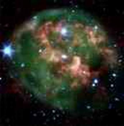 原先利用可见光波段工作的望远镜对该星云的观察表明,位于其中心的一颗致密恒星被一个由气体和尘埃组成的光圈所围绕。对于红外线望远镜来说,气体和尘埃团不会产生干扰,因此“斯皮策”能记录到这颗正在死亡的恒星和有时向周围空间喷射物质的一个巨大物质圆环。