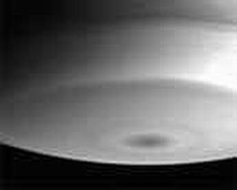 从照片上可以清楚地看到,土星南极具有一个暗斑,在它周围是一些同心云环。往北一些地方的云带变得越来越来宽,在这些云带中已出现波状结构,这样的波状结构多半会反射不同速度运动的大气和不同高度的云团。