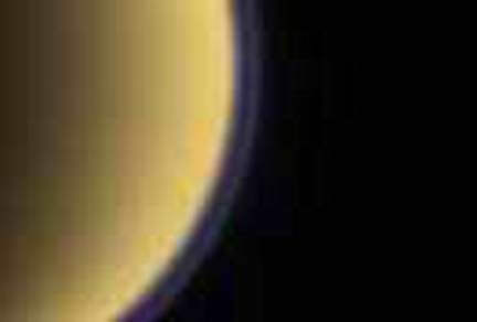 图片中强化了颜色,使层状云雾在紫外线波段显示出最大清晰度 “卡西尼”号探测器获得了悬浮到土卫六同温层高空处紫红色云雾图像。