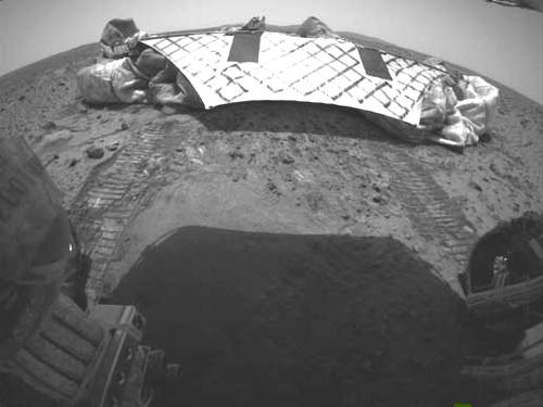 “勇气”号目前离开登陆舱约为1米,车头冲着西北方向。传回的照片显示火星车6轮都已着陆,登陆舱后留下了车轮印记 如果一切顺利,科学家们希望“勇气”号能从该陨石坑接着右转,向距火星车着陆位置约2到3千米的6座小山行进,这些小山最高的约有100米。“勇气”号主要的探测使命是寻找着陆区域是否存在过水的证据。科学家们推测,如果该区域早先确实曾经是一片湖泊,那么山坡上也许会遗留下相关痕迹。