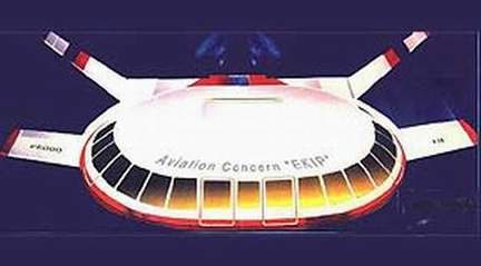 俄罗斯科学家早在20世纪90年代初期就对“ЭΚИП”飞行器原型进行了成功试验,但是由于研制经费短缺而被迫中断研制工作。俄罗斯研制人员一直在秘密研制“ЭΚИП”飞行器,其外形看上去像个巨大的比萨饼,周围伸出四个机翼,酷似科幻电影里的“飞碟”。