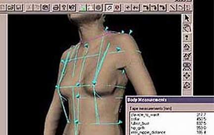 新系统名为QinetiQ,它利用三维数码摄像机不仅能拍摄顾客的照片,而且能拍摄绝对准确的体形,可以在订做衣服顾客身上描出1000多个点。在标准试衣间中安装的6台摄像机会将数据输入计算机,计算机程序会根据顾客的体形挑选合适的衣服。研制者声称,QinetiQ系统会提出像“你的臀部显得太大”这类建议或意见,试衣都是在这样的情况下进行。新系统会向购物衣服的顾客提供什么衣服合适或不合适的建议。