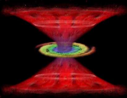 来自环形气团的X射线是散射和反射的X射线,而最初的X射线可能是看不见的炽热气体圆盘辐射的,炽热气体圆盘是由离黑洞非常近的周围盘旋的物质形成。环形气团是高速风中的一个气源,但是看不见的圆盘可能也参与了这一作用过程。X射线加热黑洞附近星系中的气体,因此形成外部更缓慢的风区。