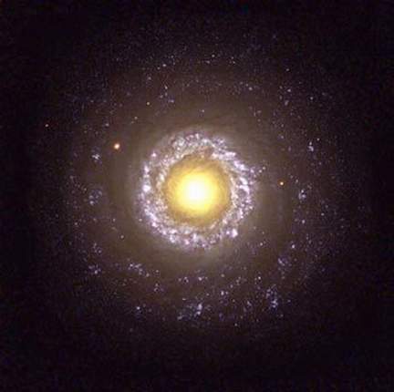 编号为NGC 7742星系中心周围的光环是恒星活跃形成的区域, 光环与中心之间的距离约为3000光年。