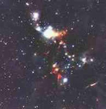 这幅照片(见图)是利用架设在美国亚利桑那州Kitt Peak National Observatory天文台2.1米口径近红外波段摄影机拍摄的,该星团编号为NGC 1333,它在英仙星座方向离开地球约1000光年。照片中可看到由气体和尘埃组成的旋转圆盘周围的恒星,正是在此气尘圆盘中会诞生行星。