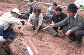 曾经出土过许多恐龙蛋化石、骨化石的浙江省天台县,最近邀请有“龙王”美誉的中国科学院古脊椎古人类研究所著名恐龙专家董枝明教授、中国地质科学院资源所矿物岩石学家陈克樵教授,首次对恐龙骨化石进行科学的抢救性挖掘。