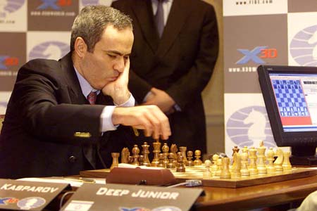历经13天的鏖战,国际象棋大师卡斯帕罗夫与电脑“更年少者”的人机大战2月7日以平局结束。卡斯帕罗夫曾于1997年在人机大战中输给了IBM公司的超级计算机“超级深蓝”。
