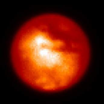 利用W. M. Keck II望远镜拍摄的土卫六照片 美国天文学家获得了有史以来土星卫星——土卫六的最详细照片,该卫星因其巨大(土卫六比水星还大)和存在大气早已引起研究人员的兴趣,其密度可与地球相比拟。土卫六大气的主要成分是氮和甲烷,土卫六表面温度平均为零下183~176℃。