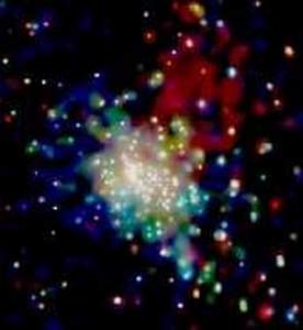 天文学家通过“钱德拉”X射线望远镜发现,在编号为RCW 38年轻星团周围存在由高能电子组成的奇特云状物,该电子云会引起恒星周围气体尘埃圆盘化学成分的改变,气体尘埃圆盘将来会形成行星。