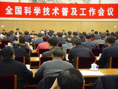 12月18日上午,全国科学技术普及工作会议在北京京西宾馆隆重开幕。中宣部、科技部、中国科协、中国科学院、国务院各有关单位、各省、市、自治区代表300多人参加了会议。会上,科技部部长徐冠华作了题为《全面贯彻“三个代表”重要思想,认真实施<科普法>,努力开创我国科普事业发展新局面》的工作报告。他在报告中说,全面建设小康社会,要求大力实施科教兴国和可持续发展战略,科学技术普及工作责任重大、任务艰巨。科普工作的开展,要以服务大多数人民利益为宗旨,正确处理好科技普及与科技创新的关系,把促进发展先进生产力和先进文化作为科普工作的中心任务来抓。科普事业必须紧紧围绕促进发展来展开,必须把发展和传播先进文化,促进人的全面发展,作为科普工作的重要方向。