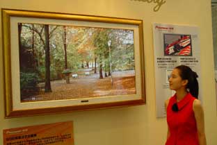 这位小姐是在参观艺术展吗?不是。这幅挂在墙上的风景画其实是先锋公司用等离子显示器显示出来的。把它与电脑连接后,只要动一动鼠标就可以随心所欲地换画面。 < 1 > < 2 >
