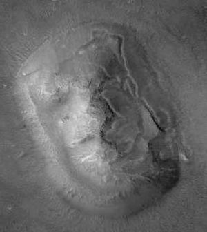 看来有些人就是不死心!为此,2001年4月8日——火星上晴朗无云的一天——火星环球勘察者重新给基多尼亚地区拍了一张照片。这张照片由于25年来技术的进步而变得非常完美,它的分辨率是1.56米(这是海盗1号分辨率的27倍以上)。现在大家看得清清楚楚了:这个所谓的“火星上的人脸”无论如何也称不上我们通常的那种“脸”的概念。它更像一块干裂的面包。