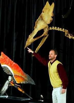 巴西古生物学家发现一种迄今为止未知的会飞翼龙化石,这种约1.1亿年前栖息在地球上的一种翼龙化石是亚历山大·凯尔纳和狄奥根斯·德·阿尔梅达两名古生物学家在巴西东北部Santan do Cariri市附近发现的。新种翼龙(科学家正是这样称呼与陆地恐龙是近亲的飞龙)取名为Thalassodromeus sethi ,它与恐龙一样也是在6500万年前从地球上消失的,但它的最不寻常特征是位于头部上的巨大骨瘤,巨大骨瘤末端分成两半,其内部具有大量彼此相通的空腔,科学家认为,这些空腔能成为翼龙调节体温的血液储存器,另一种意见是,巨大骨瘤是专门用来吸引异性翼龙的。