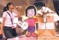 用纸片和泡沫板做成的简易小车,再插上根吸管,靠气球中的气体产生动力,推动小车前进。科技周上参观者自己可以做一辆“牛顿车”,比一比谁跑得远。美国安捷伦公司从美国空运过来了1400套科普拼装作品,在志愿者的指导下,孩子们自己动手组装,安装成功就可免费拿回家。此外,还有英国的科普大巴车、益智玩具大比拼等等,全需要参与者手脑并用,全身活动起来。????