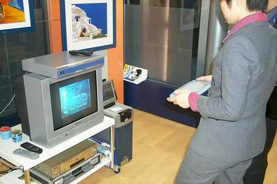 不过使用键盘操作还是让记者觉得计算机的味道过于浓厚,作为娱乐家电,似乎应该是仅靠遥控器就可使用。另外据工作人员介绍,目前这样的设备只能运用在小区的闭路电视系统上,原因很简单,电视台还没有提过这种自助式的电视节目服务。不过据记者得到的消息,四川省将从五月一日起试行自助数字电视系统,到时将有60套不同的电视节目可供观众自行选择。不知道全国范围内的普及离我们还有多远。
