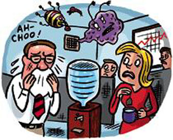 英国变态反应协会声称,约十分之四的人患变态反应与他们的工作地点有关,看来像“小传染病”一样的变态反应已使近700万职员患病,患病原因都与办公室中不同的因素有关。患变态反应时经常会出现头痛、萎靡不振、呼吸紊乱、搔痒等症状,所有这些症状都可能与办公室中的空调器、计算机、传真机以及地毯有关。办公室中电子设备如复印机释放的高浓度臭氧会引起人极度焦急不安,并能导致呼吸系统紊乱。