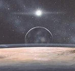 我们在地球上看到的太阳是一个巨大火球,它如此耀眼以致根本无法用肉眼直接观看。但是在太阳系其它行星上观看太阳就完全不是这样,比如说在冥王星上着陆后,即在太阳系中距离太阳最远的第九颗行星上,我们看到的太阳会是这样的情景:在冥王星上看到的太阳就像地球上看到的一颗普通恒星一样。