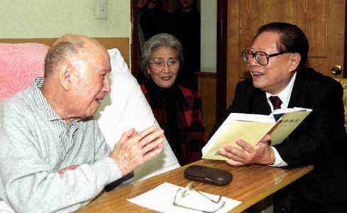中共中央总书记、国家主席、中央军委主席江泽民12月11日来到钱学森家中,看望这位为新中国科技事业建立了卓著功勋的人民科学家。
