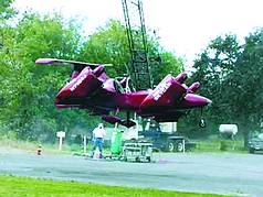 莫尔制作的“天车” 今年60岁的美国人保罗·莫尔花费40年时间、耗资2亿美元制作出一辆能够在天上飞的原型汽车———“天车”。近日在旧金山举行的“明日科技展”上,该车成为众人瞩目的焦点。