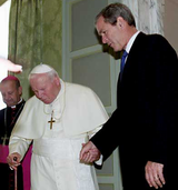 梵蒂冈教皇保罗二世最近给正在意大利访问的美国总统布什出了个难题。在30分钟的会见中,81岁的教皇拉着小布什的手说,一定不要给那些进行胚胎干细胞研究的科学家拨款,他们毁灭生命,破坏伦理。