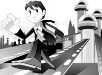 这是一座非常奇特的城市:建筑物不是四四方方的,而是随心所欲的流水状; 窗玻璃也不是一块平板,而是保持与房屋相同的曲度,阳光照在上面并不刺眼。马路倒是很直,上面跑着半球形的车子,无声无息的。行人的长相与人类比较相似,只是脖子很长,不由得让人想起恐龙。路边没有垃圾桶,而路面却很干净。这些奇怪的人并不爱护卫生,他们随手扔着一些东西,立刻不知从哪里蹿出一两只螃蟹似的机械物,咔嚓、咔嚓将废物撕碎,然后吞进肚里……