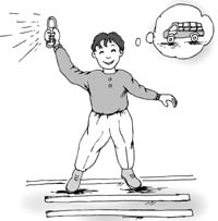 我想能不能发明这样一种携带很方便的小型手机灯。这种手机灯除了有一般手机功能外,还装置了一个亮度极强的灯。当你在黑暗中行走时,随手就可以拿在手上,往左右方向一照,那穿透力很强的灯光就提醒了在晚上疾驶的司机:注意啦,有人要过马路了,请减速行驶!